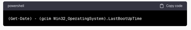 (Get-Date) - (gcim Win32_OperatingSystem).LastBootUpTime